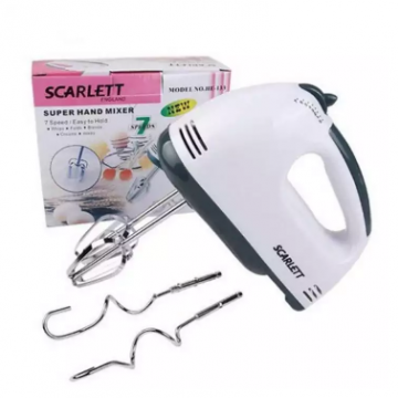 Scarlett Hand Mixer - 7 Speed Egg Beater with Chrome Beater + Dough Hook (White, 180W)