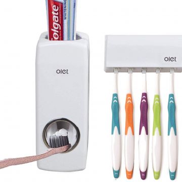 Best Quality Set of Toothpaste Dispenser & Brush Holder - White